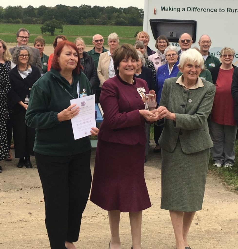The ceremony began with a formal welcome to Her Majesty’s Lord Lieutenant – Clare, Countess of Euston from our patron Mr Stephen Miles and Mrs Karin Norman-Butler, followed by a short procession and then the Lord Lieutenant’s Secretary, Sue Bennitt giving the formal announcement of the award. Lady Euston said a few words about the history of the charity before presenting the crystal award to our wonderful Founder Sally, and the certificate to CEO Ann, who, along with Deputy Lieutenant Mrs Judith Shallows, all shared in giving their thanks to all the Volunteers that make the charity the wonderful organisation that it is.