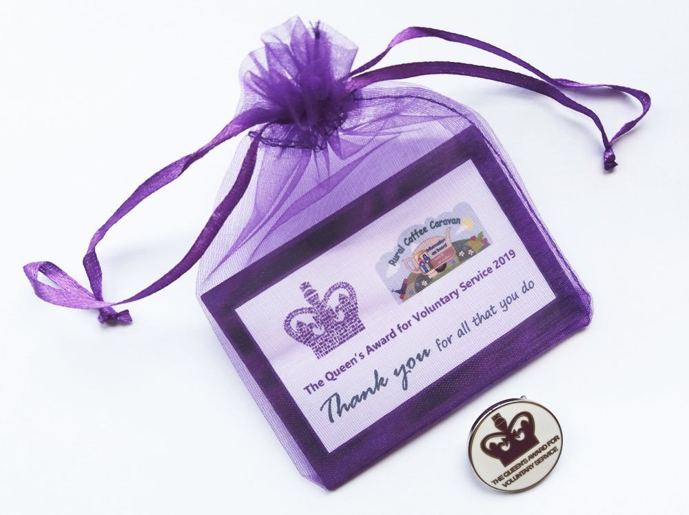 It was wonderful to watch so many Volunteers meeting and sharing stories of how the Rural Coffee Caravan has not only changed their lives but the lives of those around them, and chatting about what being a ‘Coffee Caravan Volunteer means to them. Sally made sure all Volunteers would have a memento of the occasion, visiting each table and handing them a Queen’s Award for Voluntary Service enamel pin badge which each Volunteer can wear with pride.