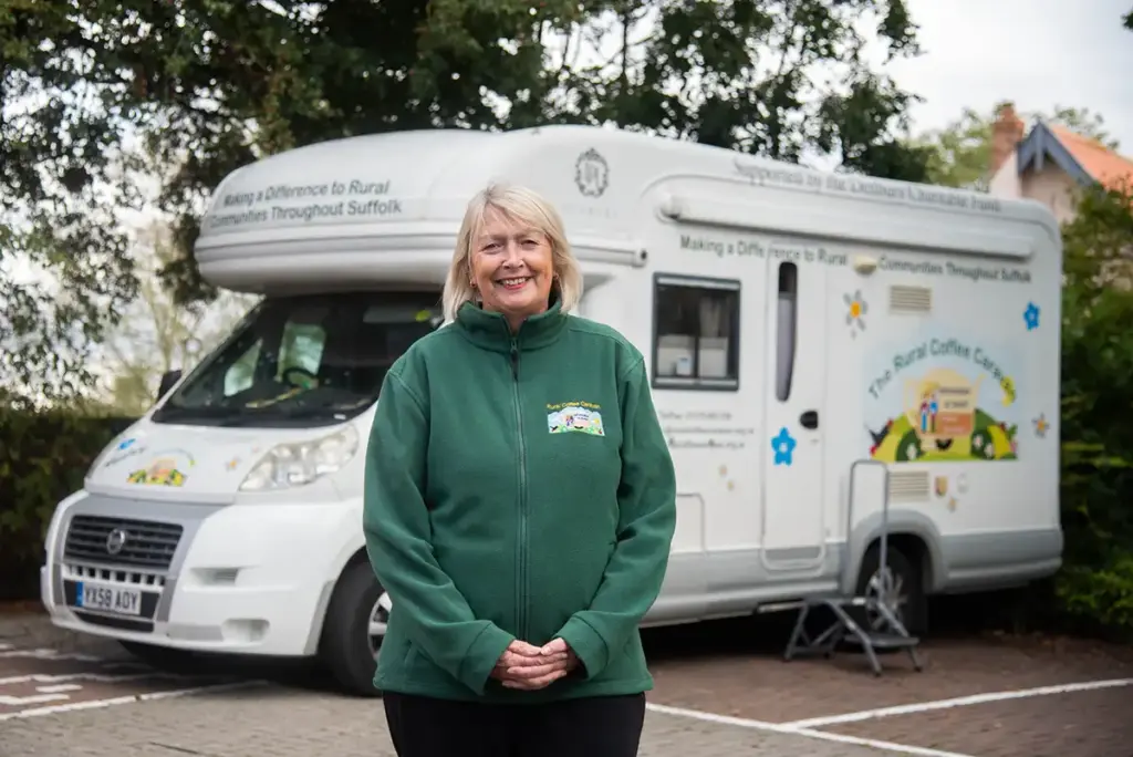 Ann Osborn, our Chief Executive Officer of The Rural Coffee Caravan (RCC), will retire at the end of May after more than two decades supporting some of Suffolk’s most isolated rural communities. Ann, who was awarded the British Empire Medal in 2025 and received an Honorary Doctorate from the University of Suffolk in 2023 for her contribution to the county’s charity sector, has led the organisation since its earliest days.