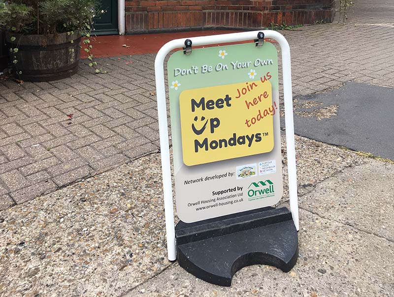 A great tool to signpost visitors to their local ‘Meet Up’ and to highlight the venue’s participation in the network. The sponsor's name, logo and website are added to the sign to acknowledge their support. Ask us for a sponsorship form.